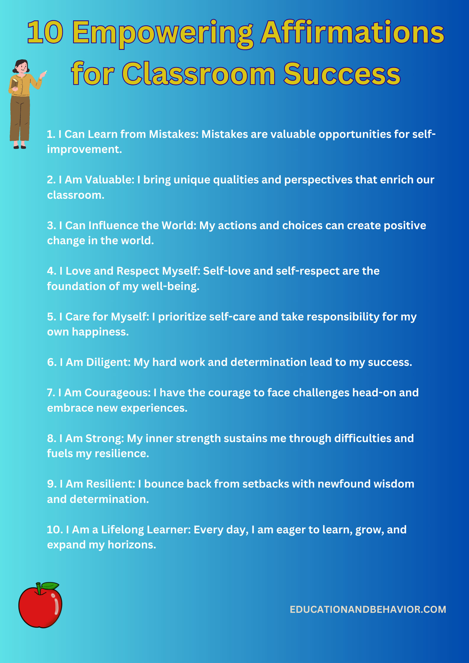 Free Poster – 10 Empowering Affirmations for Classroom Success